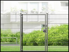 ermöglicht eine direkte Verbindung zweier Gitter, ohne Pfosten. Es gibt zusätzliche Sickerheits-Eckklemmen DEKRA geprüft, in passender Farbe